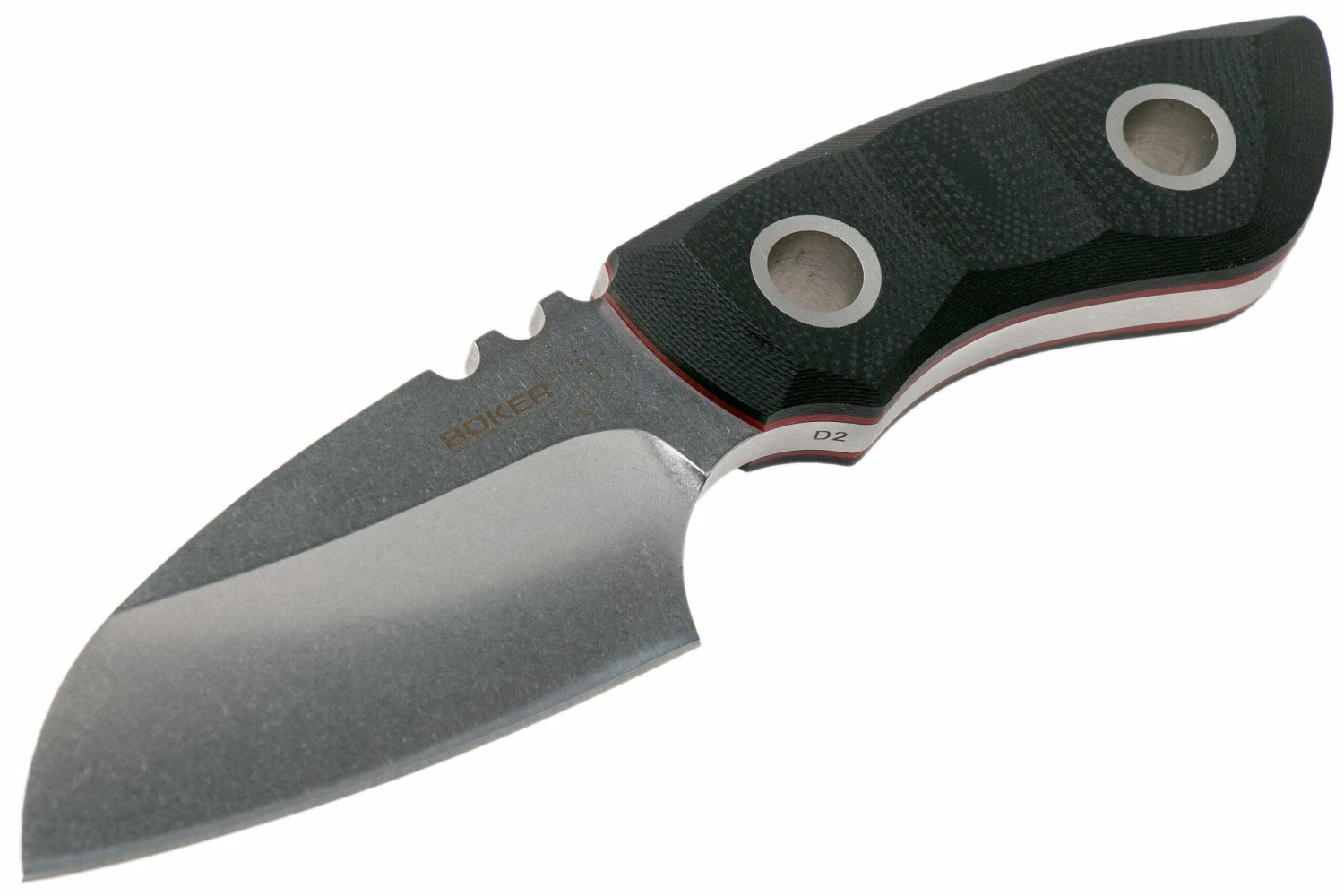 Mit dem Böker Plus Pry-Mate Pro 02BO016 beweist Jesper Voxnaes, dass ein robustes Messer nicht unglaublich groß sein muss. Wenn Du das Messer in Händen hältst wirst Du merken, dass nicht an Stahl gespart wurde. Am Rücken ist dieses Messer 5 mm dick. Es liegt toll in der Hand und lässt sich gut führen, was auch auf die Daumenrillen auf der Klinge zurückzuführen ist. Die Klinge ist hohl geschliffen, sodass die Klingenstärke keinen negativen Einfluss auf die Schneideeigenschaften hat. Der verwendete D2-Stahl bleibt lange scharf und ist ziemlich zäh.