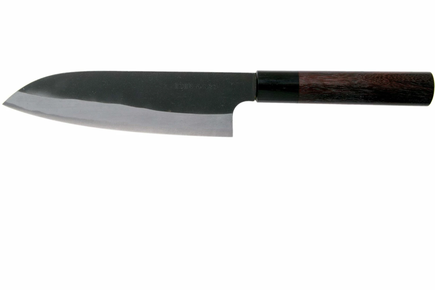 Das Eden Kanso Aogami-Santokumesser ist ein vielseitiges asiatisches Küchenmesser und zum Schneiden von Fleisch, Gemüse und Fisch. Ausgezeichnete Alternative zum Kochmesser, leichter und handlicher. Schneiden, Pfefferkörner zerdrücken und schöpfen, alles ist möglich mit diesem multifunktionalen Santoku.