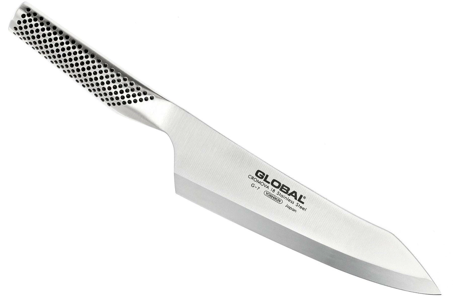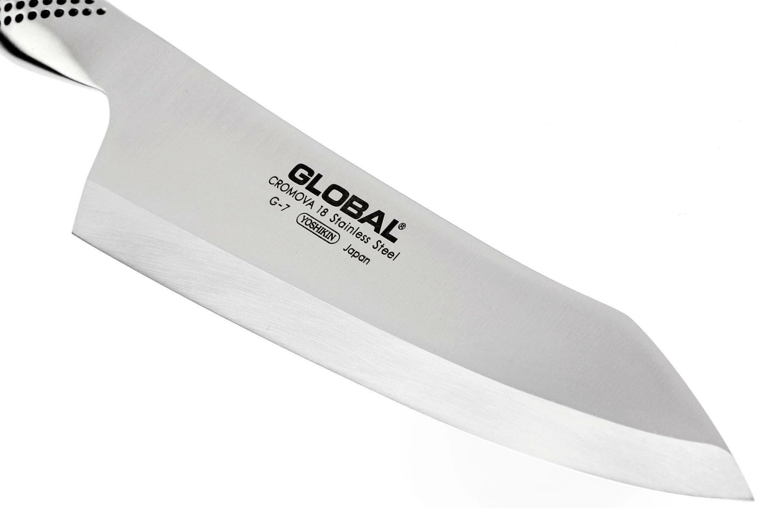 Das G7 zeichnet sich durch seine besondere Klingenform aus. Die nach oben ausgestellte Klinge läuft in einem relativ steilen Winkel zur Spitze.