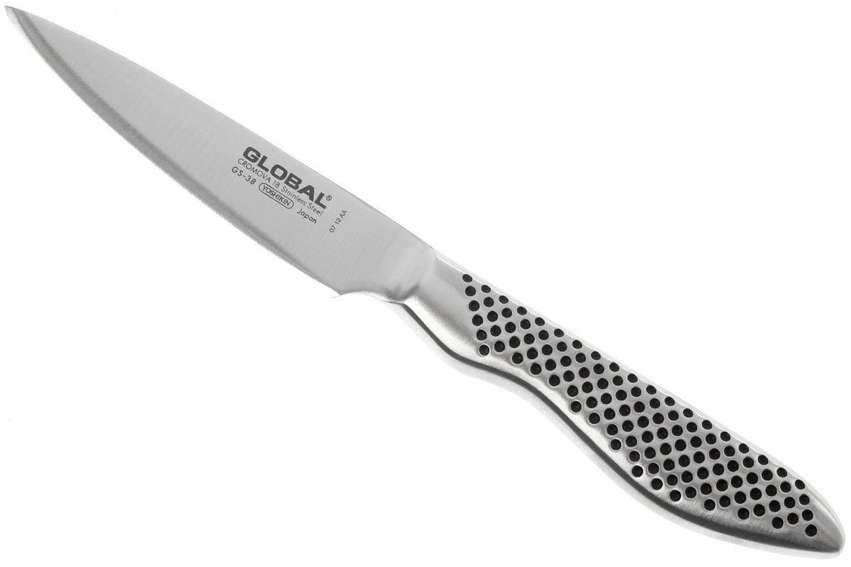 Das Global GS38 Steak- und Officemesser ist sehr vielseitig einsetzbar. Das Messer ist ideal für kleinere Schnitzarbeiten, kann aber auch hervorragend zum Schälen verwendet werden. Der Griff ist ergonomisch geformt und sorgt für eine perfekte Balance.
