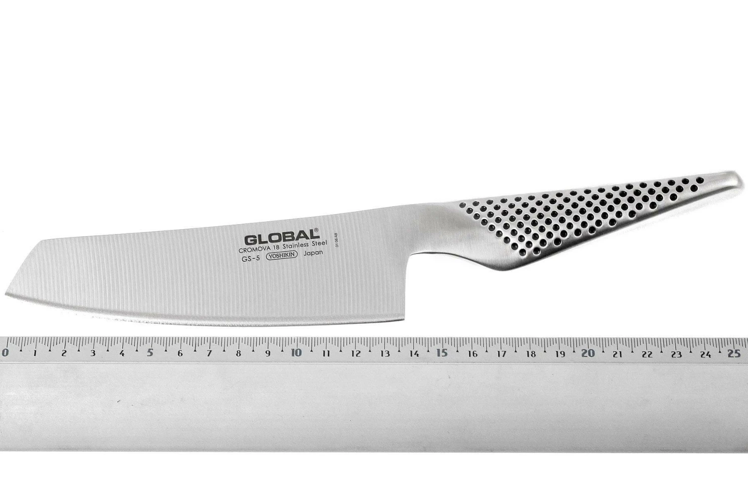 Mit dem Global GS5 Gemüsemesser schneidet man Gemüse wie nie zuvor. Die Klinge ist aus Cromova 18 Stahl und wird messerscharf geliefert. Das Messer hat eine schöne, leicht matte Oberfläche.