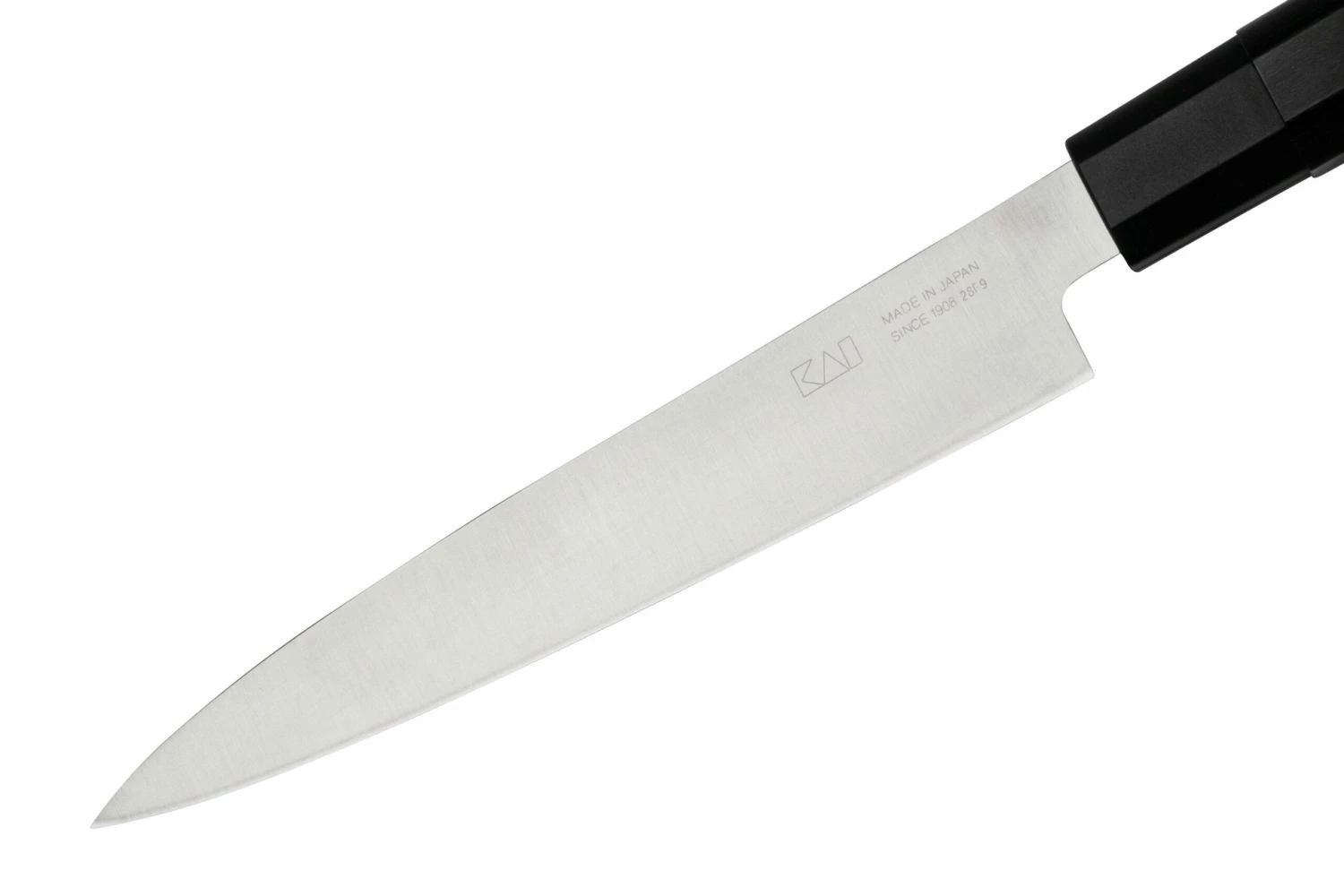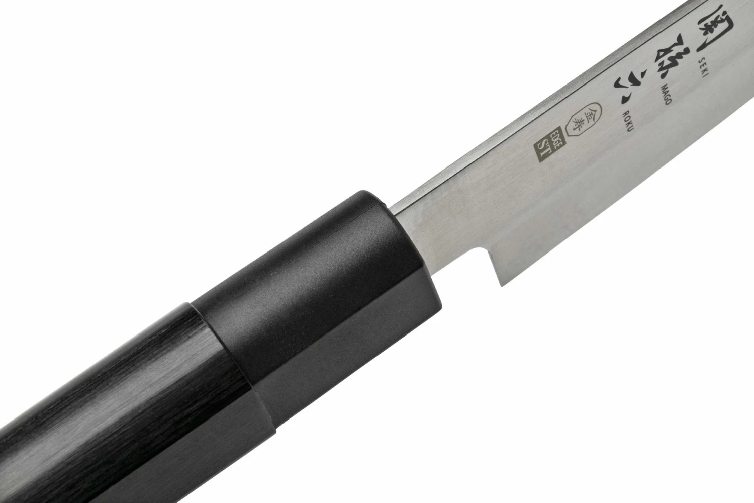 Das Kai Seki Magoroku Kinju Yanagiba 18 cm ist perfekt zum Filetieren von Fisch und Schneiden von Fleisch. Dieses traditionelle japanische Messer hat ein sehr puristisches Design mit einem sechseckigen Griff aus laminiertem, verstärktem Holz. Es ist ein sehr klassisches Design, das das Messer sehr angenehm in der Hand liegen lässt und gleichzeitig ein Blickfang in der Küche ist.