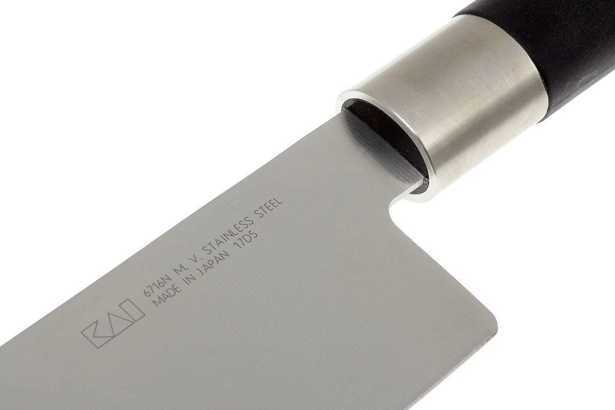 Kai ist bekannt für seine hochwertigen Kai Shun Küchenmesser. Mit der Kai Wasabi-Serie ist diese hohe Qualität nun auch zu einem erschwinglichen Preis erhältlich. Die rostfreie Klinge aus Daido 1K6-Stahl ist sehr dünn geschliffen und auf 58 HRC gehärtet. Da es keinen Kropf gibt, kannst Du die komplette Schneide benutzen. Außerdem lässt sich die Klinge so leichter schleifen. Der Griff besteht aus einer Kombination von Bambuspulver und Polypropylen. Das macht den Griff strapazierfähig und wasserfest.