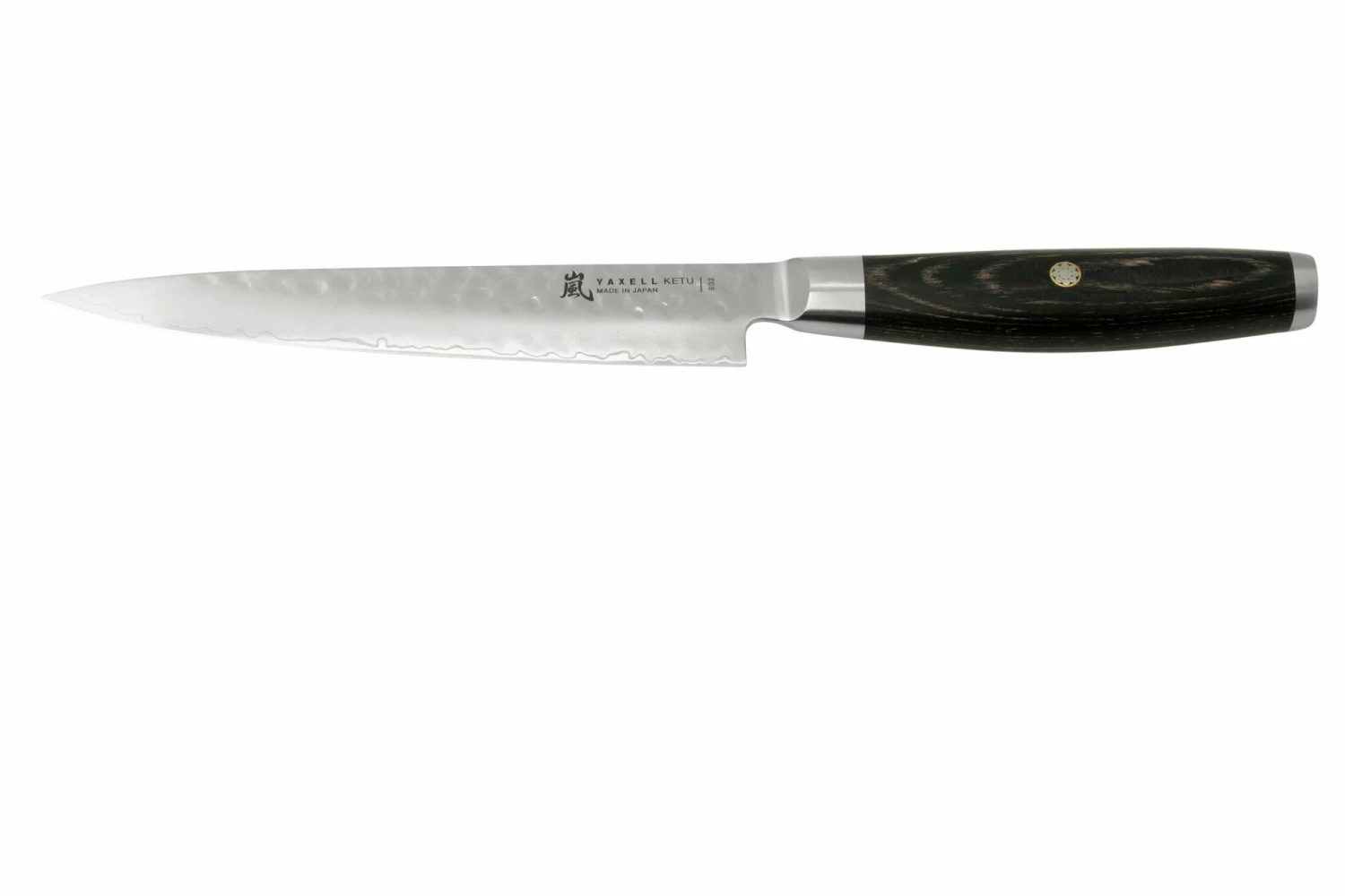 Das Yaxell Ketu Fleischmesser ist ein kleines, elegantes japanisches Küchenmesser zum Schneiden feinster Fleischstücke. Die niedrige Klinge sorgt dafür, dass die Scheiben nicht so leicht an der Klinge haften bleiben. So lassen sich dünne Fleischscheiben leicht schneiden, ohne dass sie zerreißen. Die scharfe Spitze ist ideal für kleine, feine Arbeiten wie das Entfernen von Sehnen oder Fett aus Fleischstücken.
